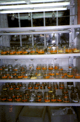 Algal culture room showing some collections of the Siphonocladales which include Valonia and Boergesenia