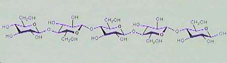 of sugar, glucose, and that every other glucose residue is oriented 180 degrees relative to its neighbor. This