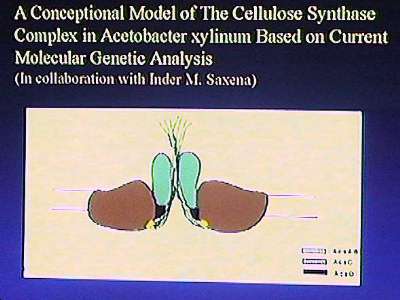 This is our latest concept for the components of cellulose synthase in Acetobacter. We recently published