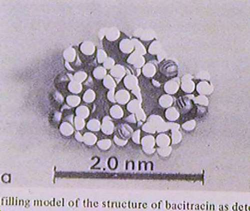 viewed with the TEM without significant beam damage. The example is a cyclic dodecapeptide, Bactracin. This