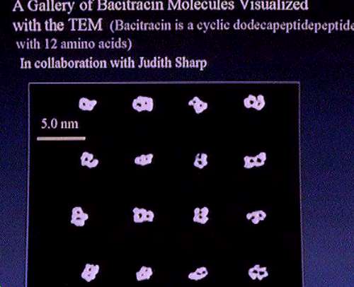 Here is the gallery of bacitracin molecules negatively stained with uranyl acetate. For more information on