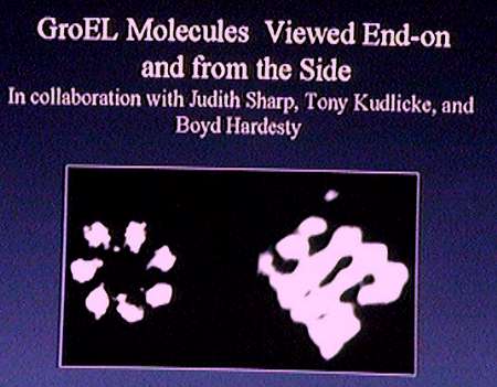 Here is GroEL, a multimeric protein complex believed to be involved in protein folding as the nascent
