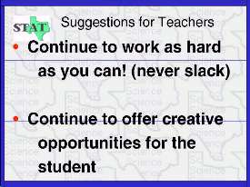Well, suggestions for us teachers relate to our work ethic, and since we have a strong